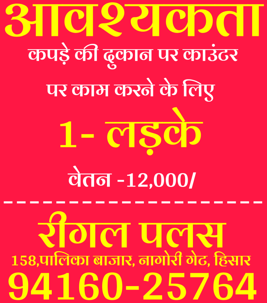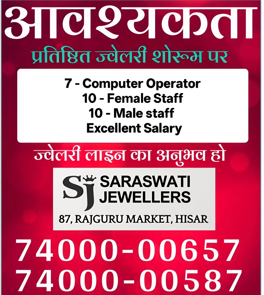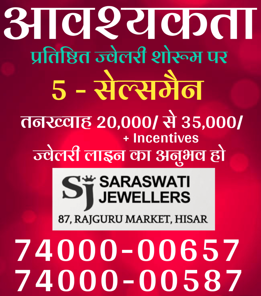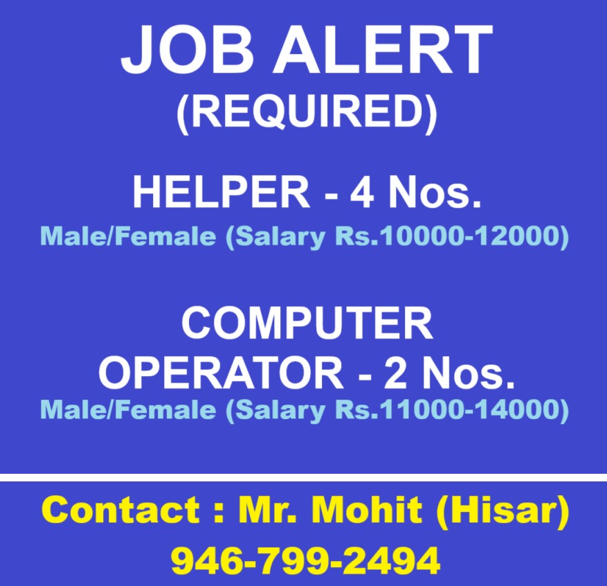 नोट – नीचे कॉलम में देखें > हिसार टाइम्स जॉब्स क्लासिफाइड > आज की बड़ी खबरें फटा फट…