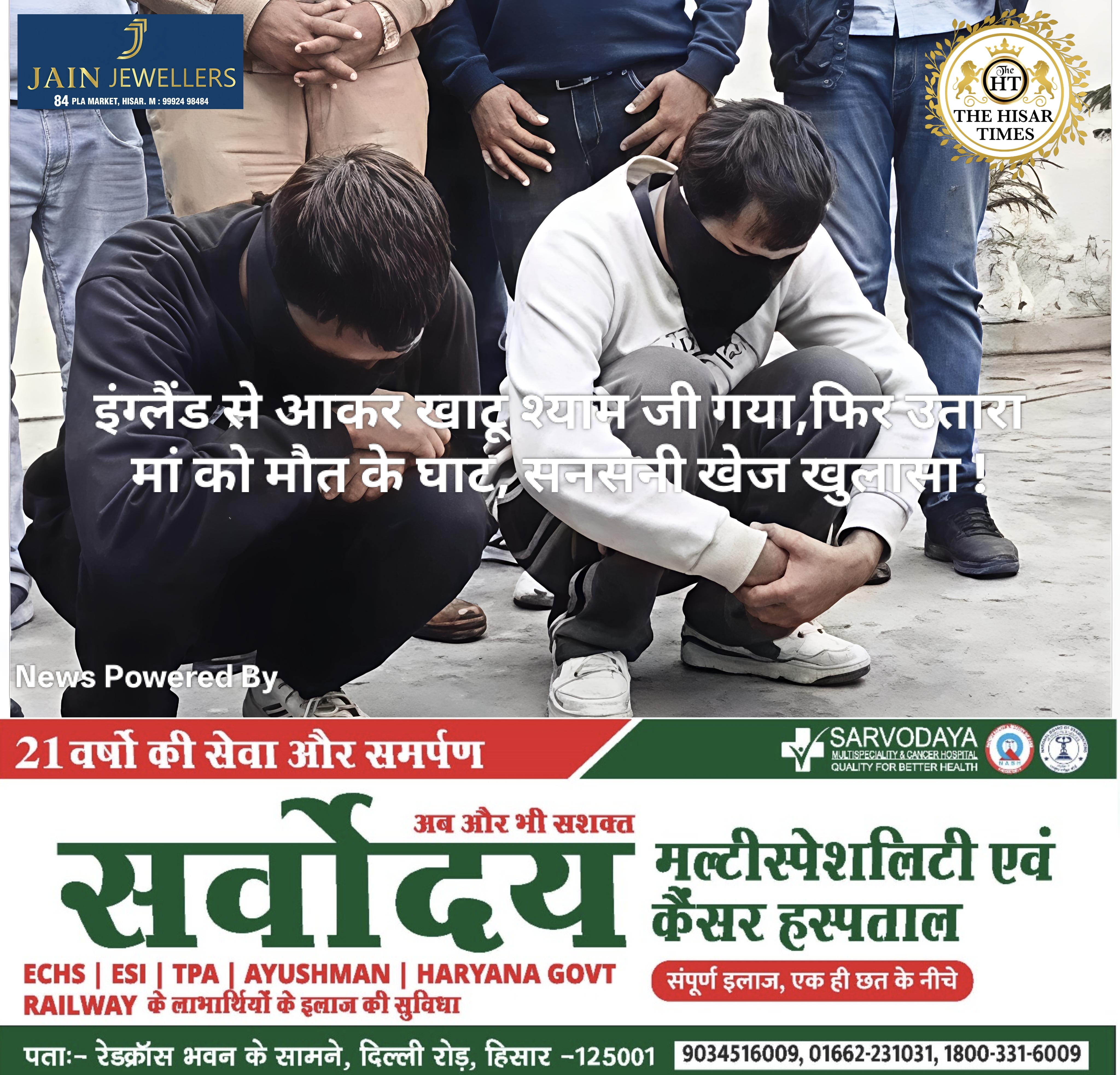 नोट – नीचे कॉलम में देखें > हिसार टाइम्स जॉब्स क्लासिफाइड > आज की बड़ी खबरें फटा फट… For Free Job & News Updates Join Hisar Times News Group https://chat.whatsapp.com/EHzVoGH50MdINoYniG4crH ➖➖➖➖➖➖➖➖➖➖➖➖➖➖➖ हिसार टाइम्स – हरियाणा के यमुनानगर में श्यामपुर गांव के सरपंच जसबीर सिंह की पत्नी बलजिंद्र कौर का हत्यारा इनका ही बेटा गोमित राठी … Continue reading इंग्लैंड से आकर खाटू श्याम जी गया,फिर उतारा मां को मौत के घाट, सनसनी खेज खुलासा !