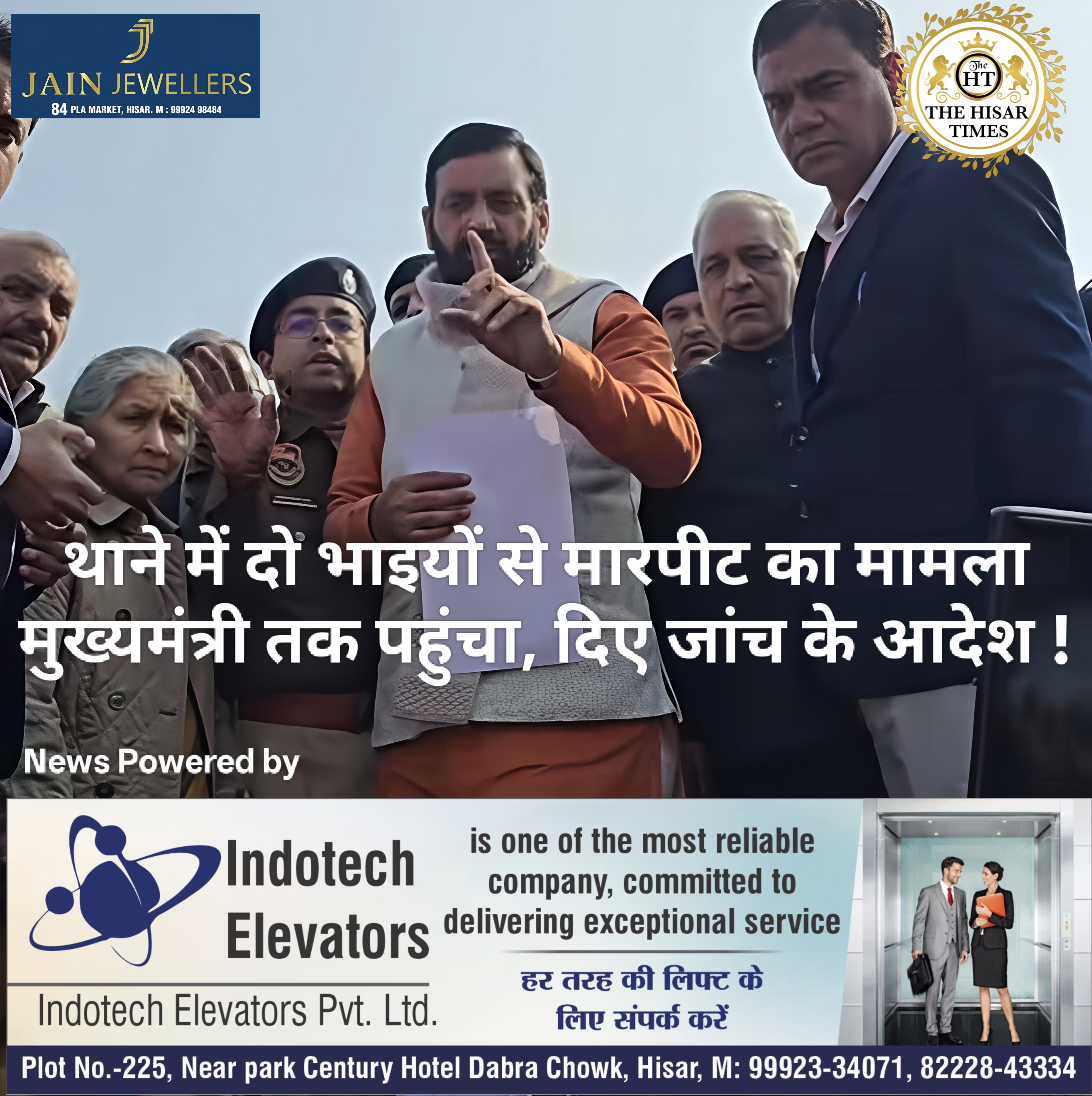 नोट – नीचे कॉलम में देखें > हिसार टाइम्स जॉब्स क्लासिफाइड > आज की बड़ी खबरें फटा फट… For Free Job & News Updates Join Hisar Times News Group https://chat.whatsapp.com/EHzVoGH50MdINoYniG4crH ➖➖➖➖➖➖➖➖➖➖➖➖➖➖➖ हिसार टाइम्स – हिसार शहर के सदर थाने में जुगलान गांव के दो चचेरे भाइयों से कथित तौर पर मारपीट और टॉर्चर का मामला … Continue reading थाने में दो भाइयों से मारपीट का मामला मुख्यमंत्री तक पहुंचा, दिए जांच के आदेश !