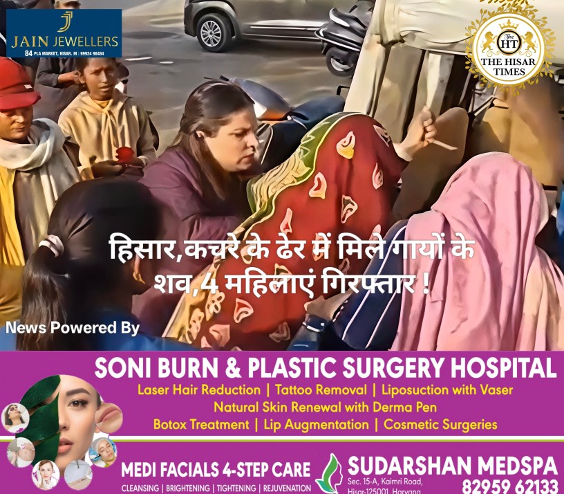 हिसार टाइम्स – हिसार शहर के पटेल नगर में कचरे के ढेर में गायों के शव मिलने से हड़कंप मच गया है। पुलिस को मौके से कट्टों में और जमीन में दबे शव मिले हैं। इस मामले में पुलिस ने 4 महिलाओं को हिरासत में लिया है। पुलिस महिलाओं से पूछताछ कर रही है और खुले में पड़े शवों को एकत्रित किया जा रहा है।बताया जा रहा है कि पुलिस को देखकर अवैध बाड़े बनाकर रह रहे लोगों ने गायों को भगाने का प्रयास किया।