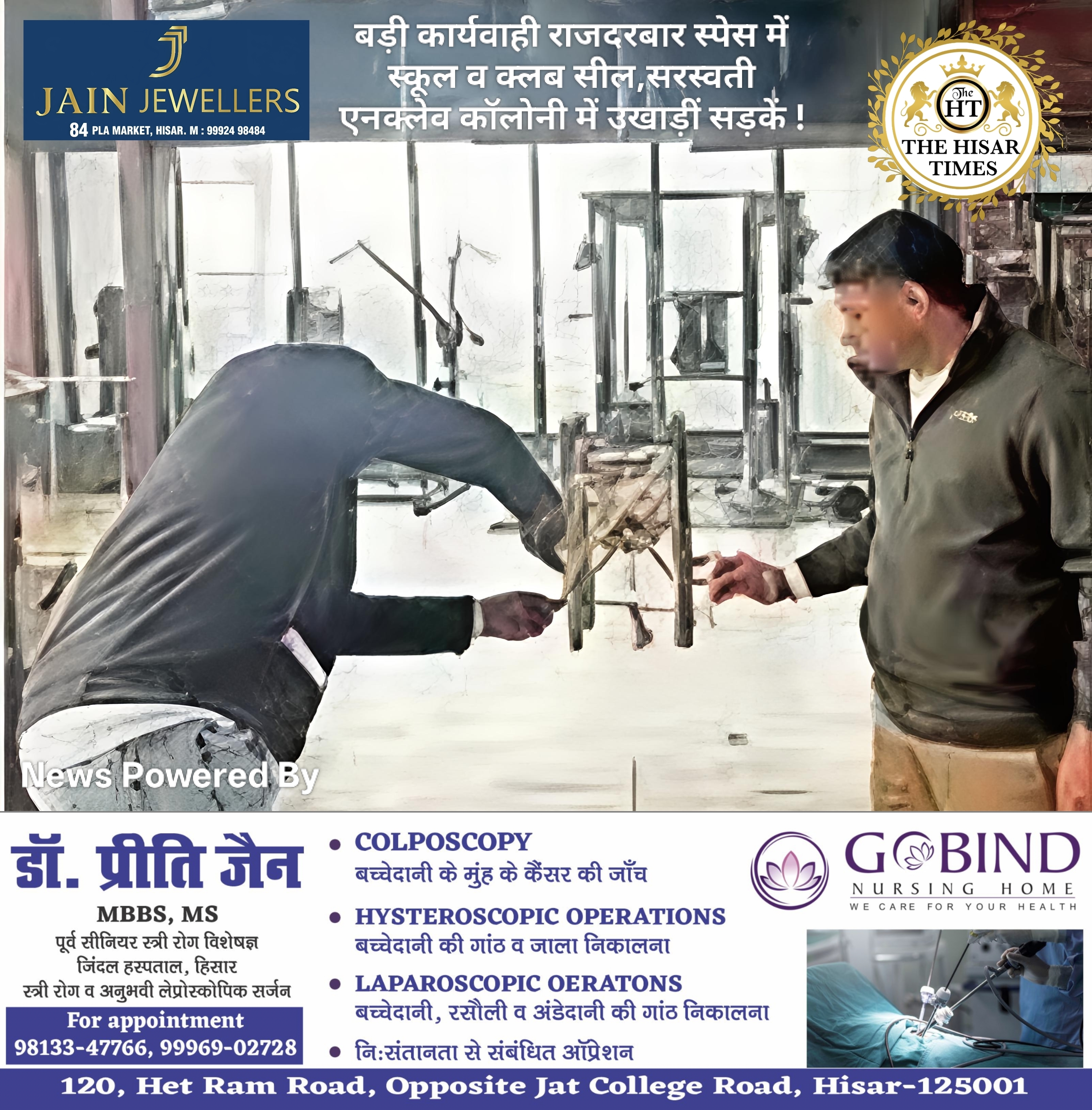 नोट – नीचे कॉलम में देखें > हिसार टाइम्स जॉब्स क्लासिफाइड > आज की बड़ी खबरें फटा फट… For Free Job & News Updates Join Hisar Times News Group https://chat.whatsapp.com/EHzVoGH50MdINoYniG4crH ➖➖➖➖➖➖➖➖➖➖➖➖➖➖➖ हिसार टाइम्स – राजदरबार स्पेस में जिला नगर योजनाकार विभाग की टीम ने दो भवनों को सील किया है। सीलिंग कार्रवाई के बाद देर … Continue reading बड़ी कार्यवाही राजदरबार स्पेस में स्कूल व क्लब सील,सरस्वती एनक्लेव कॉलोनी में उखाड़ीं सड़कें !