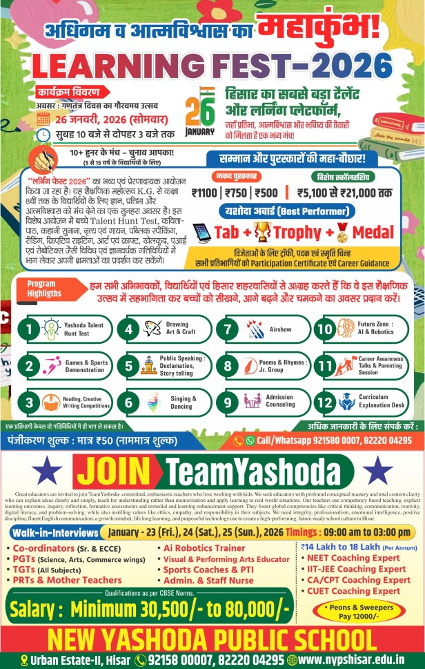 नोट – नीचे कॉलम में देखें > हिसार टाइम्स जॉब्स क्लासिफाइड > आज की बड़ी खबरें फटा फट…