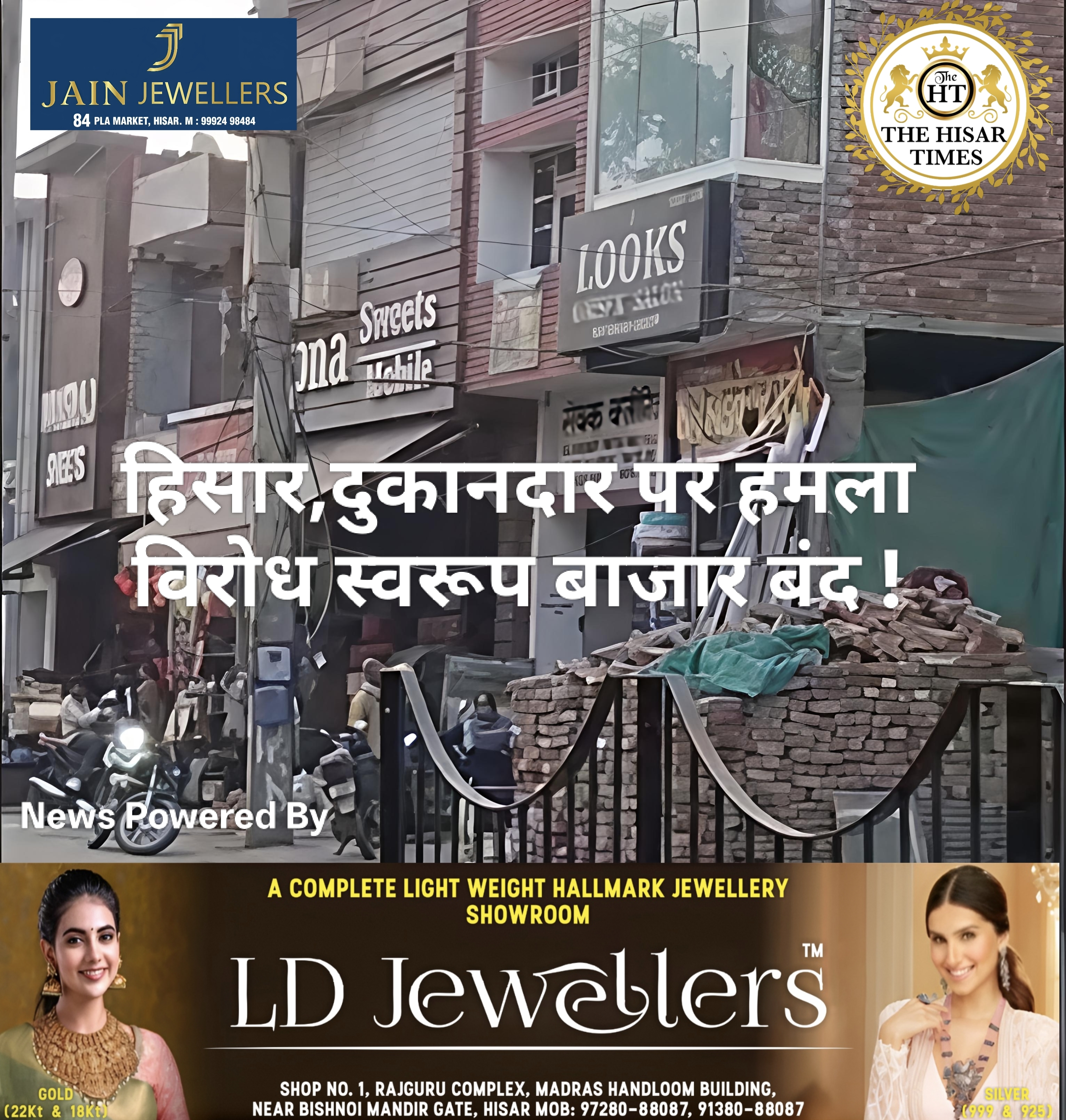 नोट – नीचे कॉलम में देखें > हिसार टाइम्स जॉब्स क्लासिफाइड > आज की बड़ी खबरें फटा फट… For Free Job & News Updates Join Hisar Times News Group https://chat.whatsapp.com/EHzVoGH50MdINoYniG4crH ➖➖➖➖➖➖➖➖➖➖➖➖➖➖➖ हिसार टाइम्स – हिसार के पटेल नगर में राम हार्डवेयर के संचालक सुनील पर 5-6 युवकों ने जानलेवा हमला कर दिया। विवाद तब शुरू … Continue reading हिसार,दुकानदार पर हमला विरोध स्वरूप बाजार बंद !