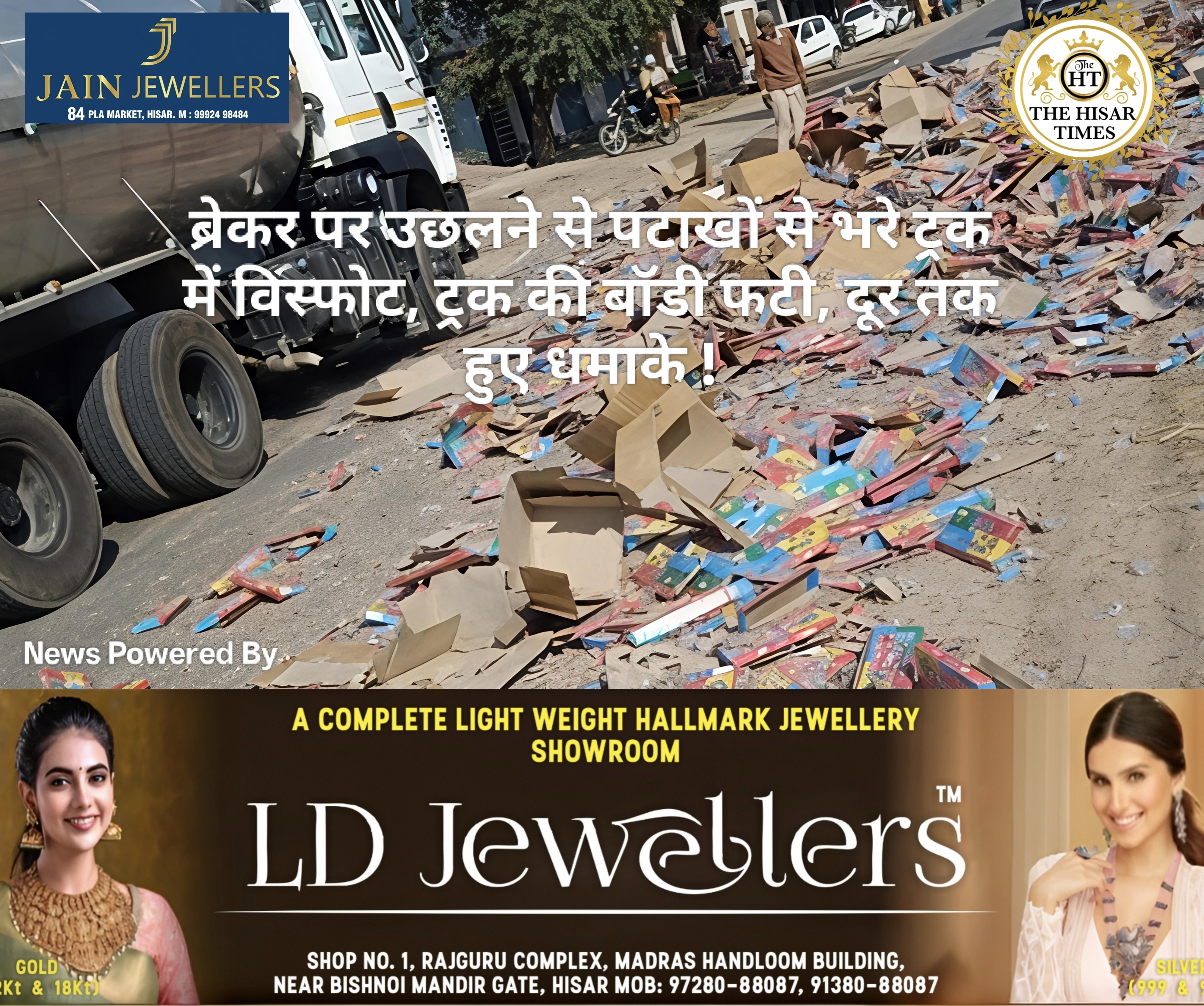 नोट – नीचे कॉलम में देखें > हिसार टाइम्स जॉब्स क्लासिफाइड > आज की बड़ी खबरें फटा फट… For Free Job & News Updates Join Hisar Times News Group https://chat.whatsapp.com/EHzVoGH50MdINoYniG4crH ➖➖➖➖➖➖➖➖➖➖➖➖➖➖➖➖➖➖ हिसार टाइम्स – हिसार जिले के भिवानी रोहिल्ला गांव के पास पटाखों से भरी एक गाड़ी में अचानक विस्फोट हो गया। यह घटना सड़क … Continue reading ब्रेकर पर उछलने से पटाखों से भरे ट्रक में विस्फोट, ट्रक की बॉडी फटी, दूर तक हुए धमाके !