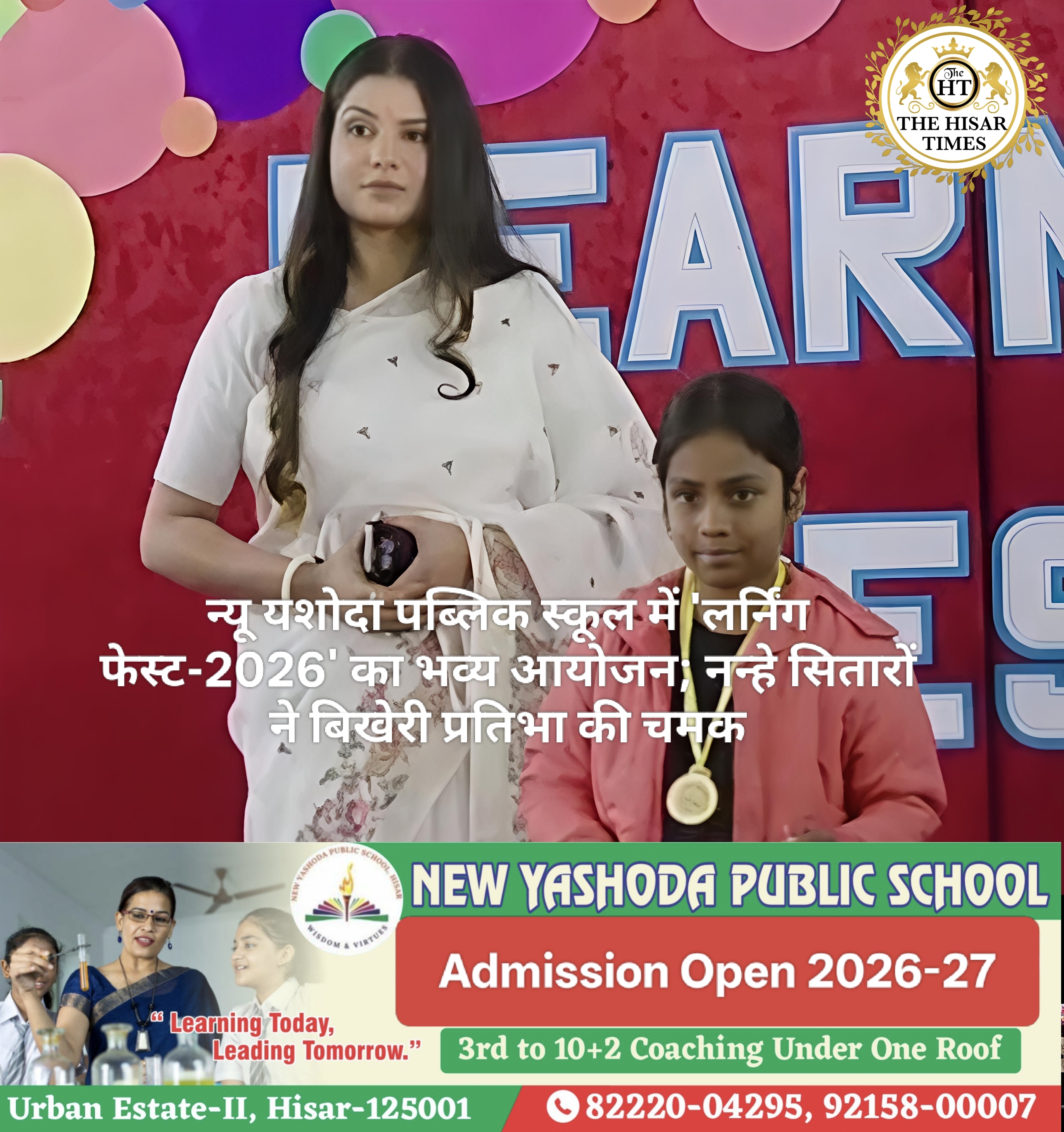 हिसार टाइम्स – हिसार अर्बन एस्टेट स्थित न्यू यशोदा पब्लिक स्कूल में गणतंत्र दिवस के पावन अवसर पर ‘लर्निंग फेस्ट-2026’ का सफलतापूर्वक आयोजन किया गया। इस महोत्सव में हिसार शहर के विभिन्न स्कूलों के कक्षा के.जी. से 8वीं तक के सैकड़ों विद्यार्थियों ने उत्साहपूर्वक भाग लेकर अपनी प्रतिभा का प्रदर्शन किया। प्रतिभा और तकनीक का … Continue reading न्यू यशोदा पब्लिक स्कूल में ‘लर्निंग फेस्ट-2026’ का भव्य आयोजन; नन्हे सितारों ने बिखेरी प्रतिभा की चमक !