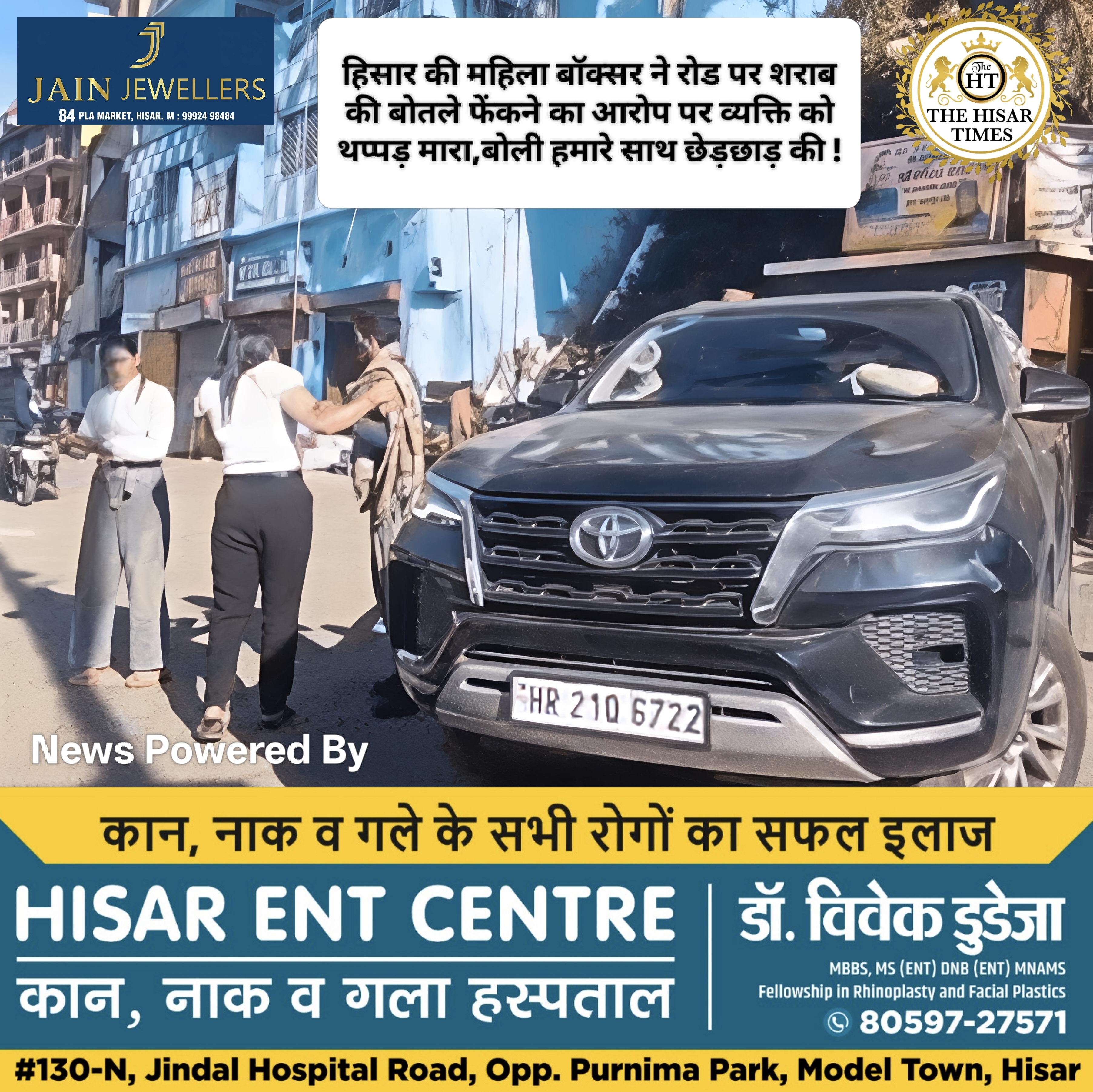 नोट – नीचे कॉलम में देखें > हिसार टाइम्स जॉब्स क्लासिफाइड > आज की बड़ी खबरें फटा फट… For Free Job & News Updates Join Hisar Times News Group https://chat.whatsapp.com/EHzVoGH50MdINoYniG4crH ➖➖➖➖➖➖➖➖➖➖➖➖➖➖➖➖➖➖ हिसार टाइम्स – हिसार की अंतरराष्ट्रीय बॉक्सर स्वीटी बूरा का उत्तराखंड के अल्मोड़ा में टैक्सी यूनियन के साथ तीखा विवाद हो गया, जिसके वीडियो … Continue reading हिसार की महिला बॉक्सर ने रोड पर शराब की बोतले फेंकने का आरोप पर व्यक्ति को थप्पड़ मारा,बोली हमारे साथ छेड़छाड़ की !