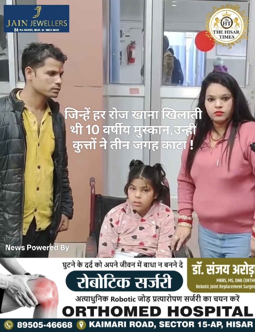नोट – नीचे कॉलम में देखें > हिसार टाइम्स जॉब्स क्लासिफाइड > आज की बड़ी खबरें फटा फट… For Free Job & News Updates Join Hisar Times News Group https://chat.whatsapp.com/EHzVoGH50MdINoYniG4crH ➖➖➖➖➖➖➖➖➖➖➖➖➖➖➖➖➖➖ हिसार टाइम्स – हिसार शहर में बुधवार को रोजाना खाना खिलाने वाली 10 साल की बच्ची को ही कुत्तों ने अपना शिकार बना लिया। … Continue reading जिन्हें हर रोज खाना खिलाती थी 10 वर्षीय मुस्कान,उन्ही कुत्तों ने तीन जगह काटा !