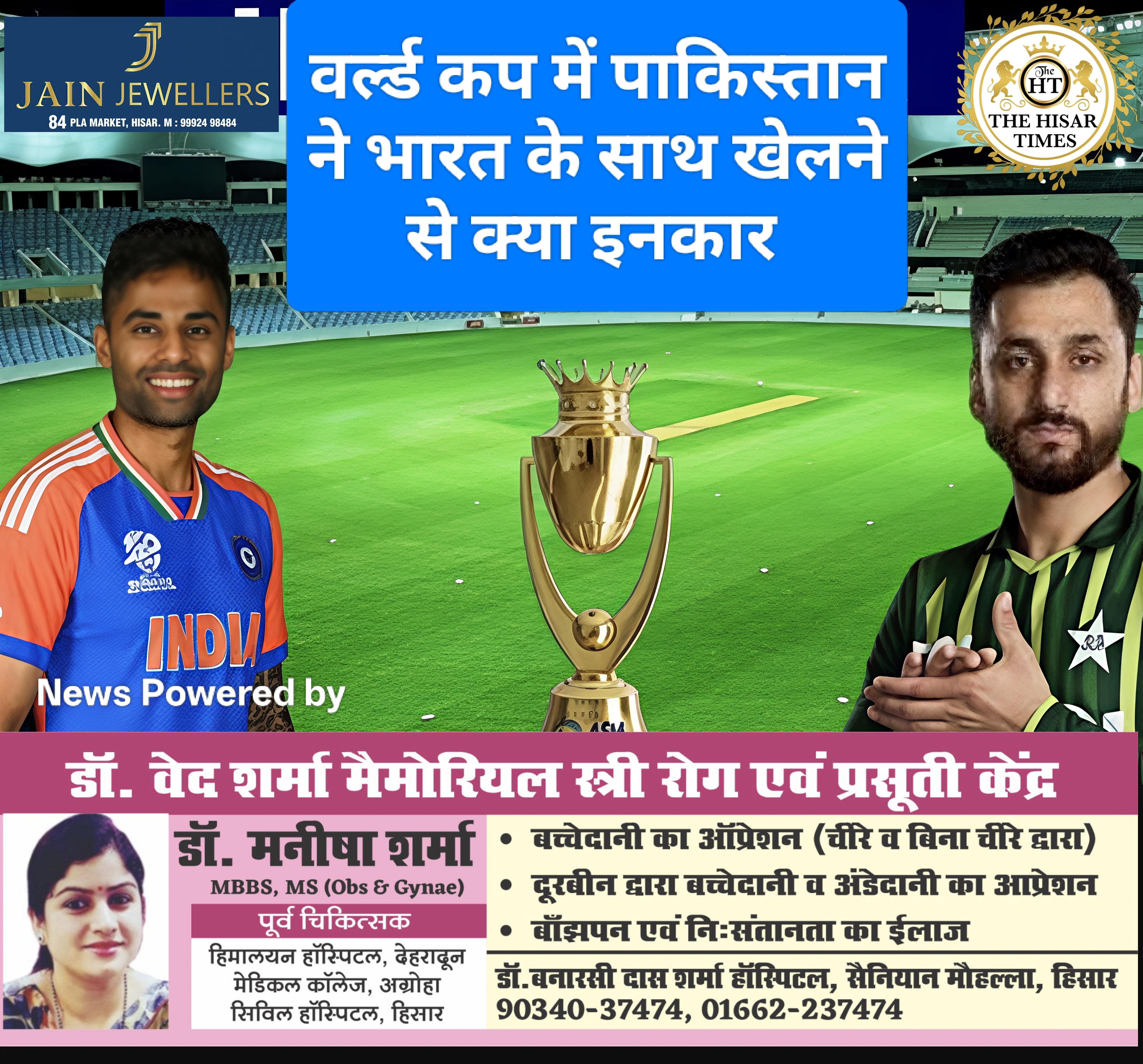 नोट – नीचे कॉलम में देखें > हिसार टाइम्स जॉब्स क्लासिफाइड > आज की बड़ी खबरें फटा फट… For Free Job & News Updates Join Hisar Times News Group https://chat.whatsapp.com/EHzVoGH50MdINoYniG4crH ➖➖➖➖➖➖➖➖➖➖➖➖➖➖➖➖➖➖ हिसार टाइम्स – टी-20 वर्ल्ड कप 2026 के सबसे प्रतीक्षित मुकाबले पर अनिश्चितता के काले बादल छा गए हैं। पाकिस्तान सरकार ने आधिकारिक तौर … Continue reading बड़ी खबर,वर्ल्ड कप में पाकिस्तान ने भारत के साथ खेलने से किया इनकार !