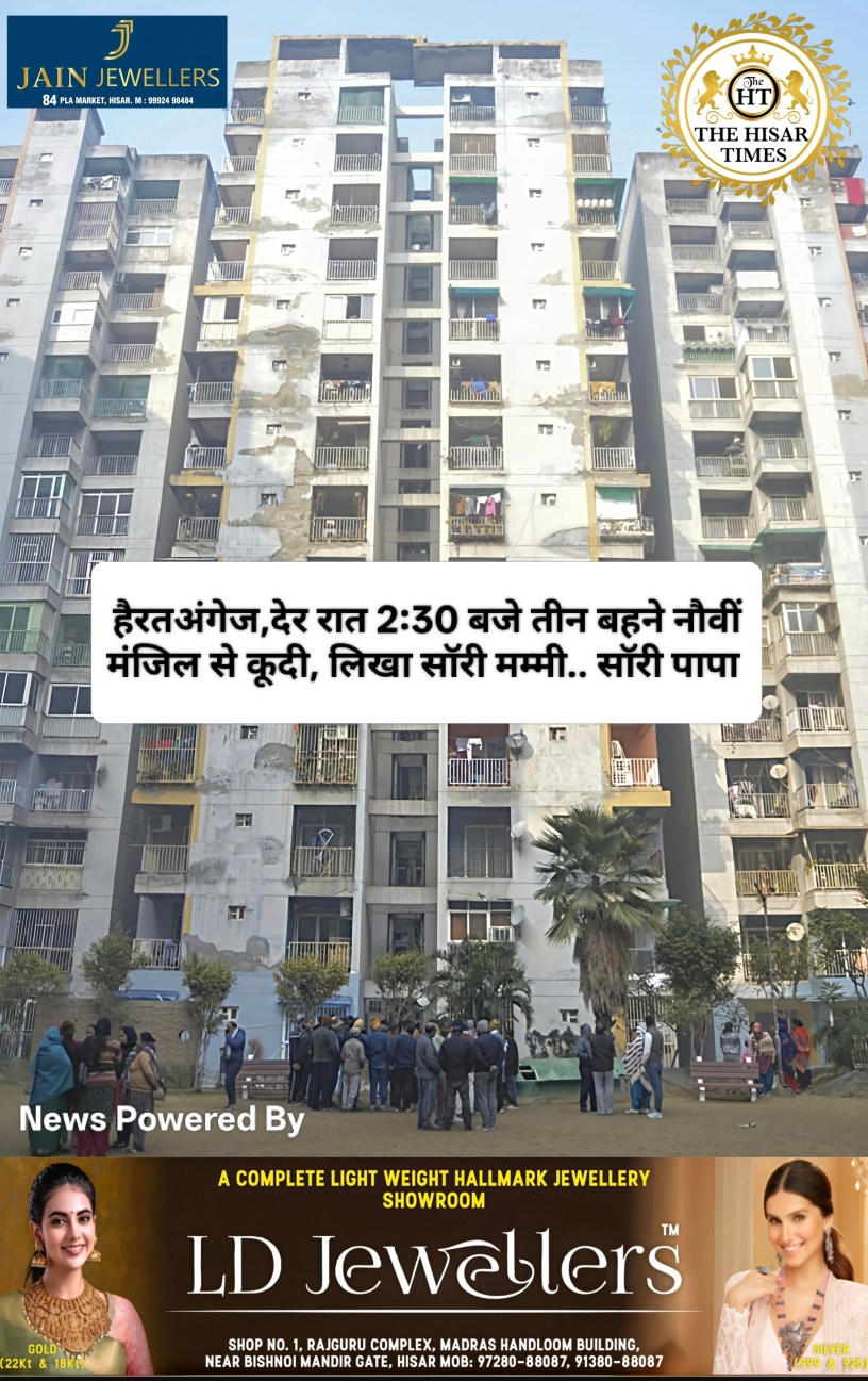 हिसार टाइम्स – गाजियाबाद में मंगलवार देर रात नौवीं मंजिल पर स्थित एक फ्लैट की बालकनी से कूदने के बाद तीन नाबालिग बहनों की मौत हो गई। बताया जाता है कि उन्हें कोरियन गेम की लत थी। थाना टीला मोड़ क्षेत्र स्थित भारत सिटी में कथित तौर पर ऑनलाइन गेम की शिकार तीन सगी बहनों ने एक साथ बिल्डिंग की 9वीं मंजिल से कूदकर आत्महत्या कर ली। मौके से एक सुसाइड नोट भी बरामद हुआ है, जिसमें तीनों बहनों ने लिखा है – ‘सॉरी मम्मी, सॉरी पापा…’
