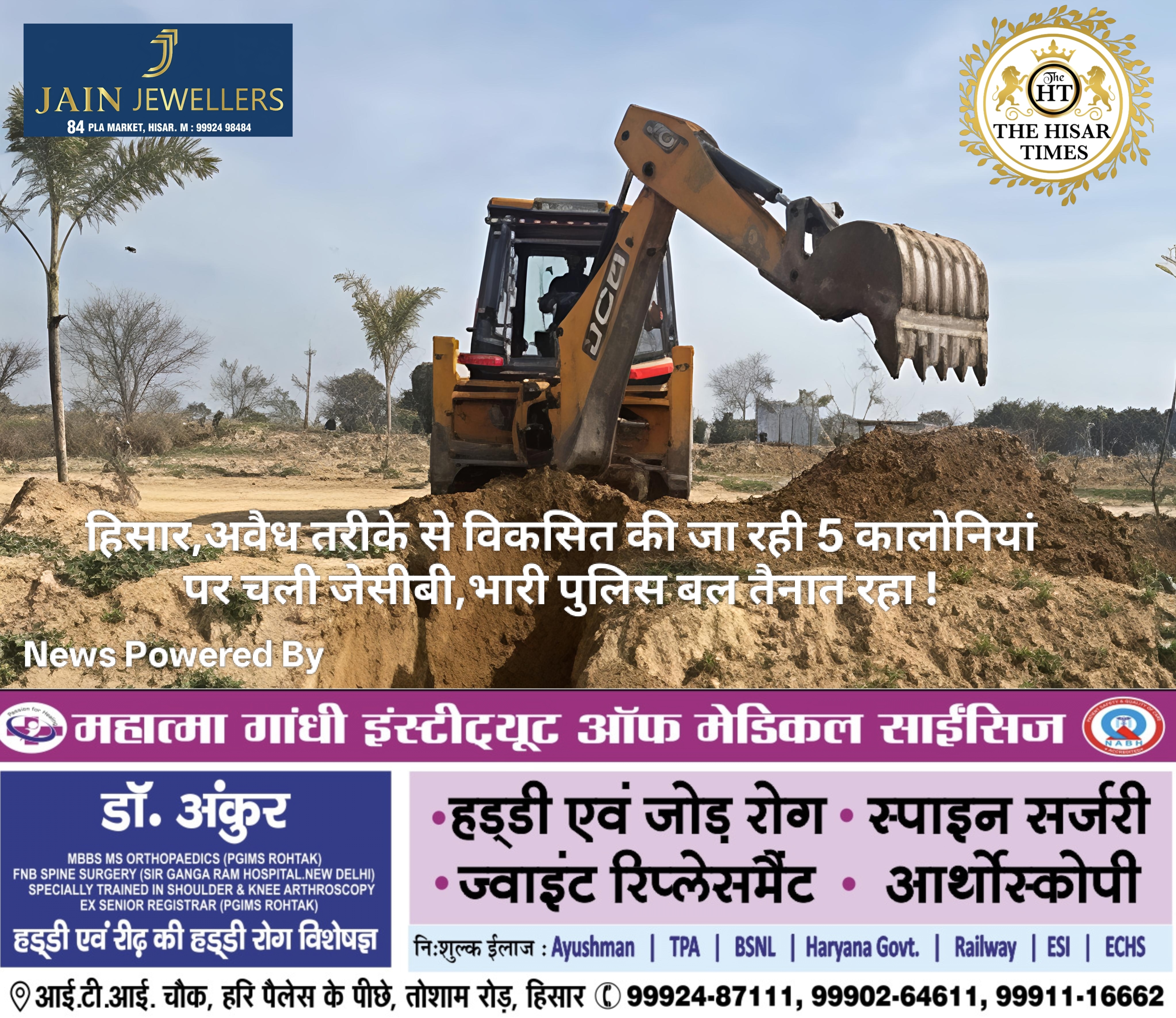 हिसार,अवैध तरीके से विकसित की जा रही 5 कालोनियां पर चली जेसीबी,भारी पुलिस बल तैनात रहा !