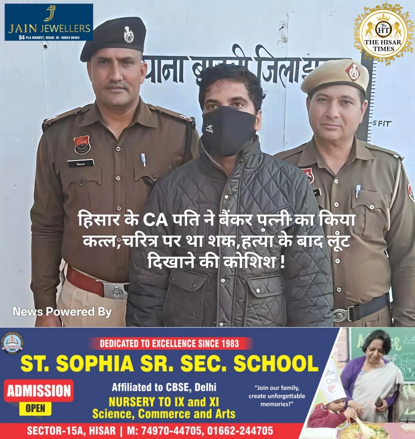 हिसार टाइम्स – हिसार और हांसी के बीच रिश्तों की जो डोर पांच महीने पहले बंधी थी, वह शक की भेंट चढ़ गई। बहादुरगढ़ में महिला बैंककर्मी महक की हत्या की गुत्थी सुलझाते हुए झज्जर पुलिस ने उसके पति, चार्टर्ड अकाउंटेंट (CA) अंशुल धवन को गिरफ्तार कर लिया है। पुलिस की 18 घंटे की गहन तफ्तीश में यह साफ हो गया कि लुटेरों की जिस कहानी ने सनसनी फैलाई थी, वह महक के पति का बुना हुआ एक फरेब था।