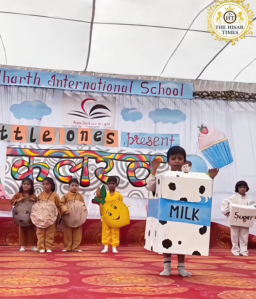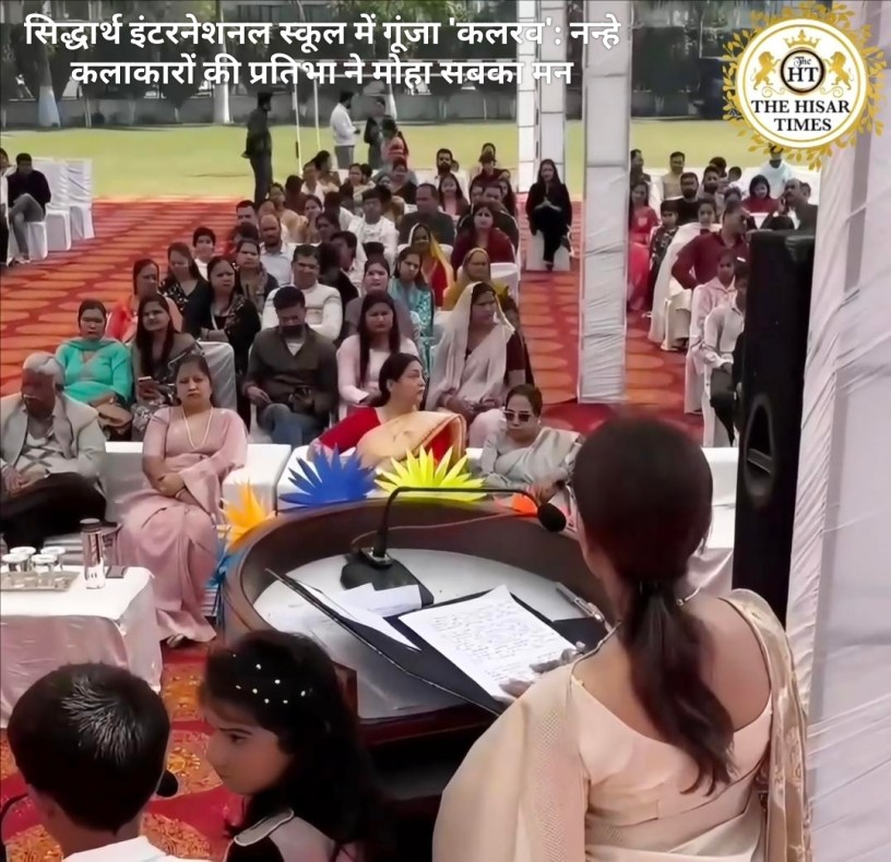 हिसार टाइम्स – हिसार स्थित सिद्धार्थ इंटरनेशनल स्कूल के प्रांगण में प्री-प्राइमरी के नन्हे-मुन्ने बच्चों ने अपने बहुप्रतीक्षित वार्षिकोत्सव ‘कलरव’ के माध्यम से एक इंद्रधनुषी छटा बिखेर दी। इस भव्य और रंगारंग समारोह में नौनिहालों ने अपनी मासूमियत और अद्भुत प्रतिभा का ऐसा समां बांधा कि दर्शक दीर्घा में बैठे अभिभावक और अतिथि मंत्रमुग्ध हो गए। कार्यक्रम का शुभारंभ नन्हे बच्चों द्वारा प्रस्तुत ‘शिव स्तुति’ से हुआ, जिसने न केवल वातावरण में आध्यात्मिकता का संचार किया, बल्कि सकारात्मक ऊर्जा से पूरे माहौल को सराबोर कर दिया। इसके पश्चात, बच्चों ने एक मधुर स्वागत गीत के माध्यम से अतिथियों का हर्षोल्लास के साथ अभिनंदन किया।