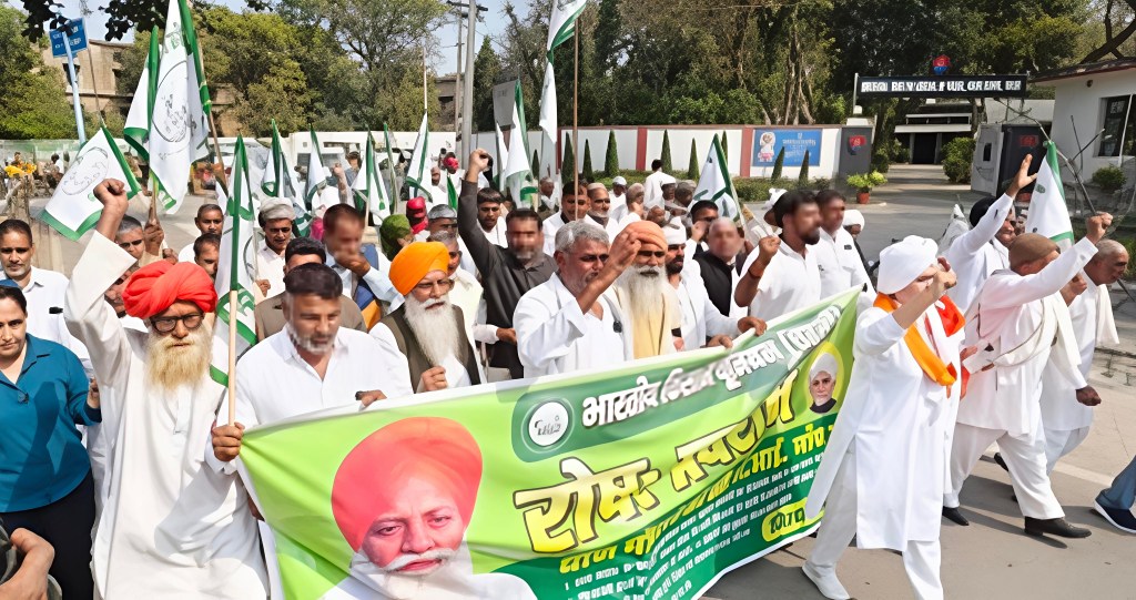 अमेरिका ट्रेड डील रद्द करने की मांग के लिए किसानों ने घेरा लघु सचिवालय