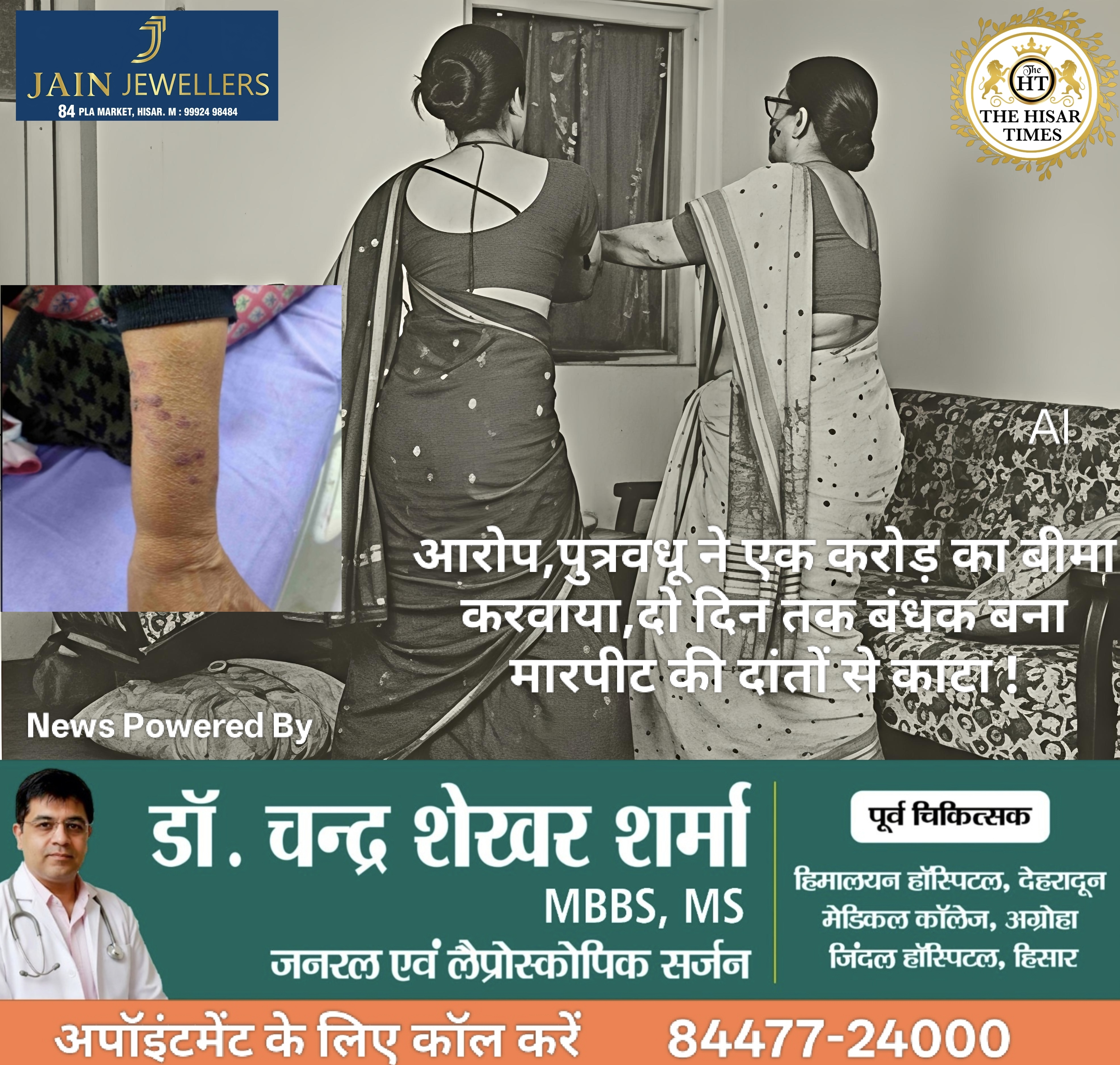 आरोप,पुत्रवधू ने एक करोड़ का बीमा करवाया,दो दिन तक बंधक बना मारपीट की दांतों से काटा !
