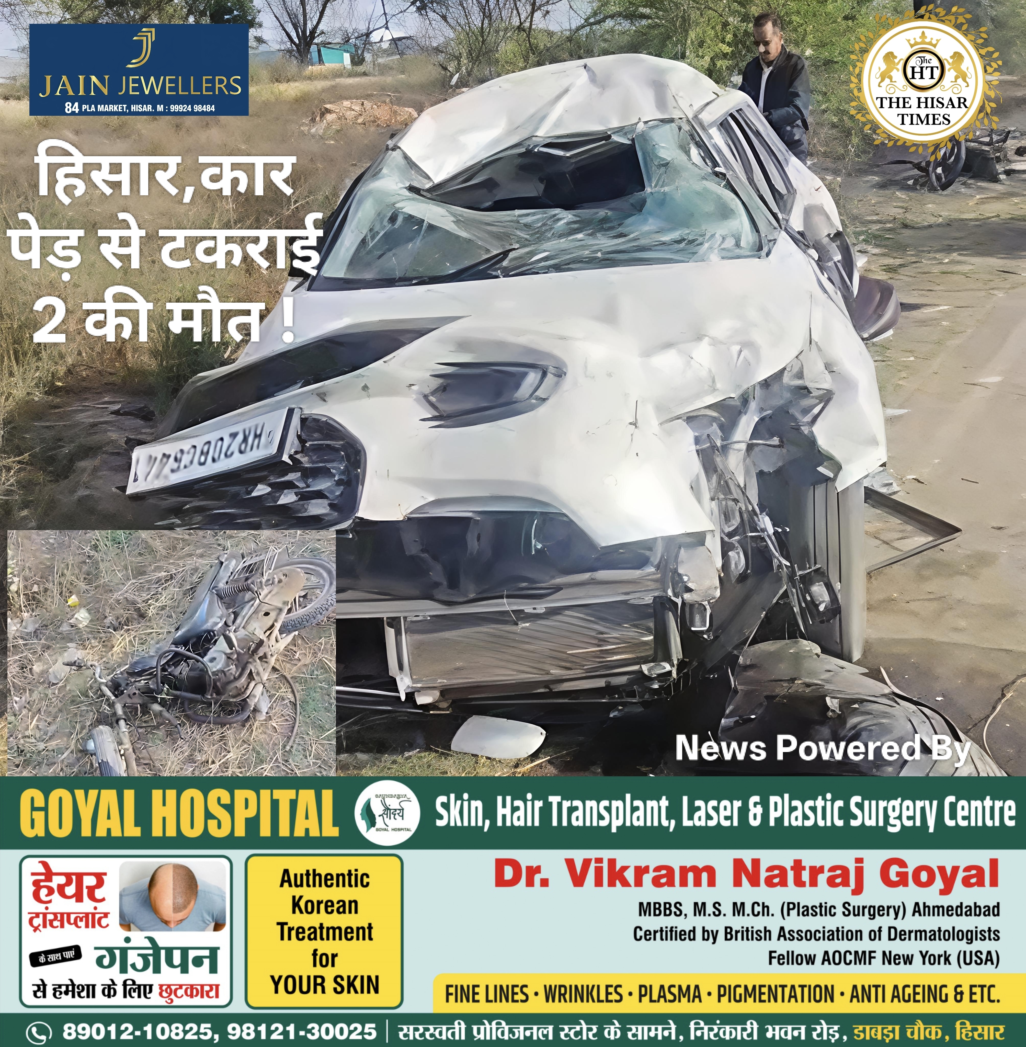 हिसार,कार पेड़ से टकराई 2 की मौत !