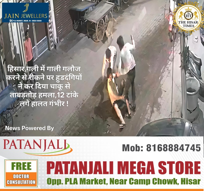 हिसार टाइम्स – हिसार की बडवाली ढाणी क्षेत्र में सामाजिक जिम्मेदारी निभाना एक व्यक्ति के लिए भारी पड़ गया। गली में सरेआम गाली-गलौज और हुड़दंग कर रहे युवकों को रोकना राजेश बंसल नामक व्यक्ति के लिए जानलेवा साबित होते-होते बचा। आरोपियों ने तैश में आकर राजेश पर चाकू से ताबड़तोड़ हमला कर दिया, जिससे वे गंभीर रूप से घायल हो गए। इस सनसनीखेज वारदात के बाद इलाके में दहशत का माहौल है और घायल को इलाज के लिए निजी अस्पताल में भर्ती कराया गया है।