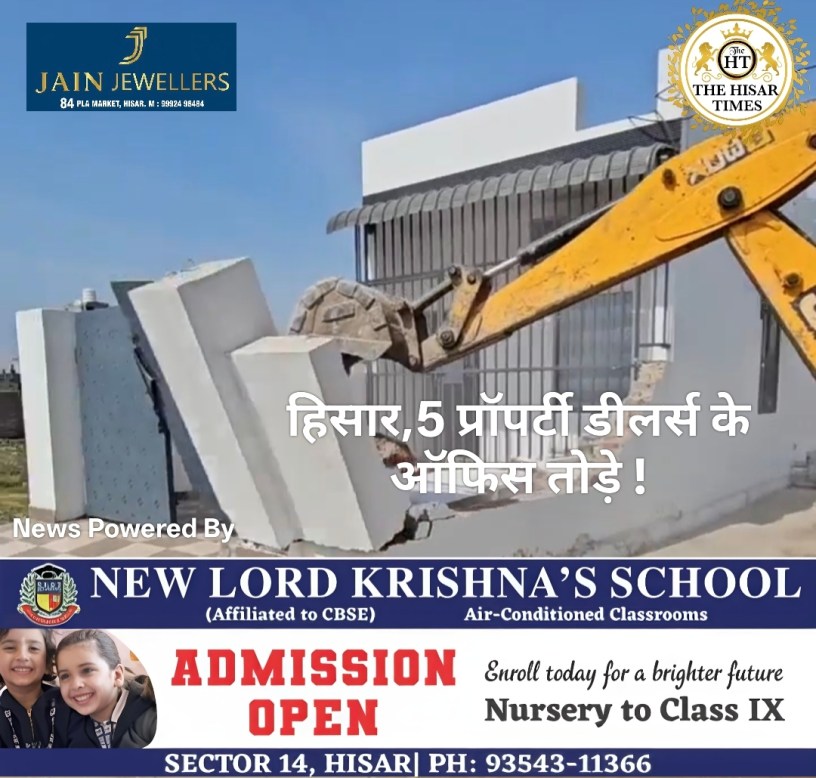 हिसार टाइम्स – हिसार के नगर निगम हाउस की मीटिंग के बाद डीटीपी विभाग एक्शन मोड में आ गया है। मंगलवार को जिला नगर योजनाकार (DTP) विभाग की टीम ने पुलिस बल की मौजूदगी में कैमरी रोड से तोशाम रोड के बीच स्थित 33 फुट लिंक रोड पर स्थित चार अवैध कॉलोनियों में व्यापक तोड़फोड़ अभियान चलाया। विभाग की टीम ने दीप्ति एन्क्लेव, मास्टर एन्क्लेव, विजय विहार और सालासर एन्क्लेव को निशाना बनाया।
