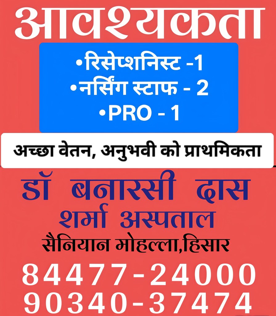 नोट – नीचे कॉलम में देखें > हिसार टाइम्स जॉब्स क्लासिफाइड > आज की बड़ी खबरें फटा फट…