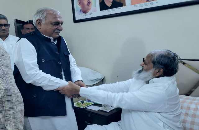 हिसार टाइम्स – हरियाणा की राजनीति में एक दिलचस्प नजारा देखने को मिला जब पूर्व मुख्यमंत्री भूपेंद्र सिंह हुड्डा, कैबिनेट मंत्री अनिल विज से मिलने उनके निवास पर पहुँचे। अनिल विज वर्तमान में फ्रैक्चर के कारण बेड रेस्ट पर हैं। दोनों नेताओं के बीच करीब आधे घंटे तक सौहार्दपूर्ण माहौल में बातचीत हुई। हुड्डा ने विज के स्वास्थ्य का हालचाल जाना और मजाकिया लहजे में कहा कि आपके बिना विधानसभा में वो रौनक और जोश नजर नहीं आता। इस मुलाकात के दौरान कई अन्य विधायक भी मौजूद रहे, जिसने राजनीतिक गलियारों में चर्चाएं तेज कर दी हैं।