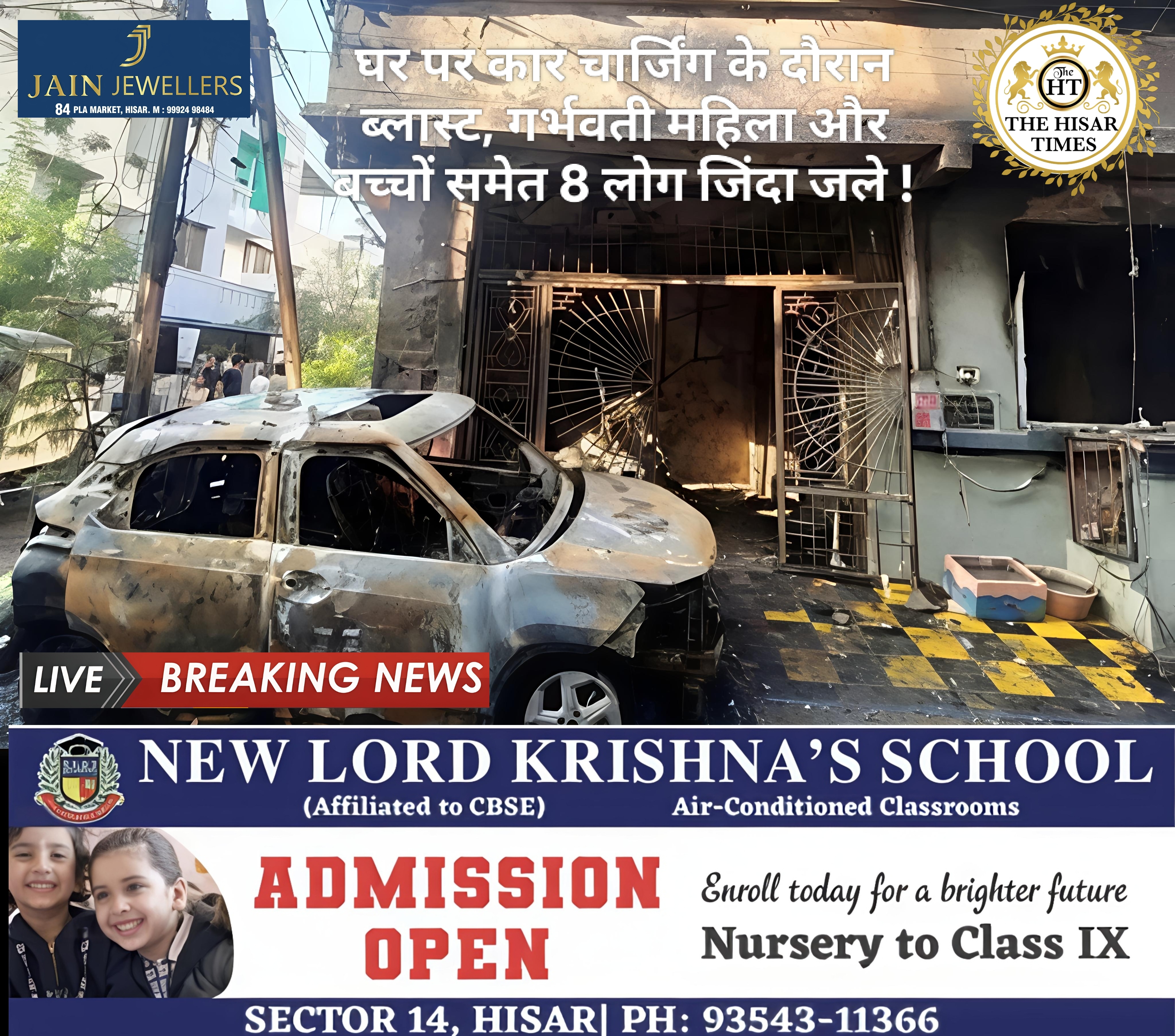 नोट – नीचे कॉलम में देखें > हिसार टाइम्स जॉब्स क्लासिफाइड > आज की बड़ी खबरें फटा फट… For Free Job & News Updates Join Hisar Times News Group https://chat.whatsapp.com/EHzVoGH50MdINoYniG4crH ➖➖➖➖➖➖➖➖➖➖➖➖➖➖➖➖➖➖ इंदौर में EV चार्जिंग के दौरान काल बनी शॉर्ट सर्किट: एक ही परिवार के 8 सदस्यों की जिंदा जलने से मौत हिसार टाइम्स – … Continue reading घर पर कार चार्जिंग के दौरान ब्लास्ट, गर्भवती महिला और बच्चों समेत 8 लोग जिंदा जले !