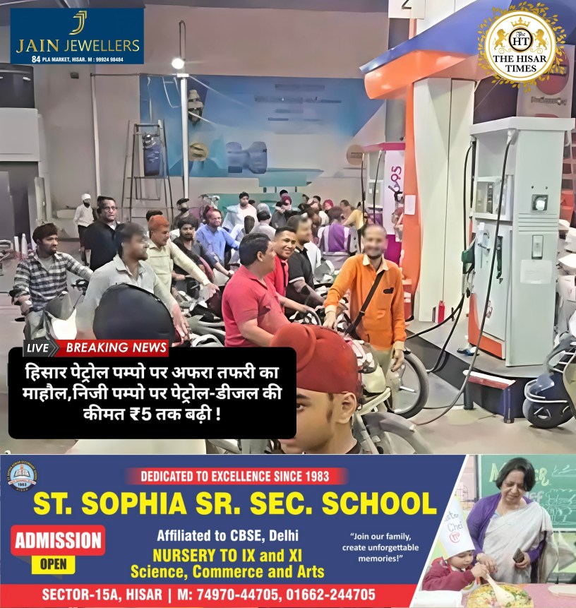 हिसार टाइम्स – ईरान और इज़राइल के बीच बढ़ते तनाव का सीधा असर अब हिसार की जमीनी हकीकत पर दिखने लगा है । शहर में यह अफवाह और डर फैल गया है कि आने वाले दिनों में तेल और गैस की भारी किल्लत हो सकती है । इसी पैनिक के चलते हिसार के पेट्रोल पंपों पर लोगों की भारी भीड़ उमड़ रही है । विशेषकर सरसौद के पास स्थित पेट्रोल पंपों पर किसान अपनी ट्रैक्टर-ट्रॉलियों में बड़े-बड़े नीले ड्रम रखकर भारी मात्रा में डीजल का स्टॉक करने पहुँच रहे हैं । हालांकि पंप संचालकों और प्रशासन का कहना है कि वर्तमान में तेल की सप्लाई दुरुस्त है, लेकिन डर की वजह से पिछले दो दिनों में तेल की बिक्री कई गुना बढ़ गई है ।