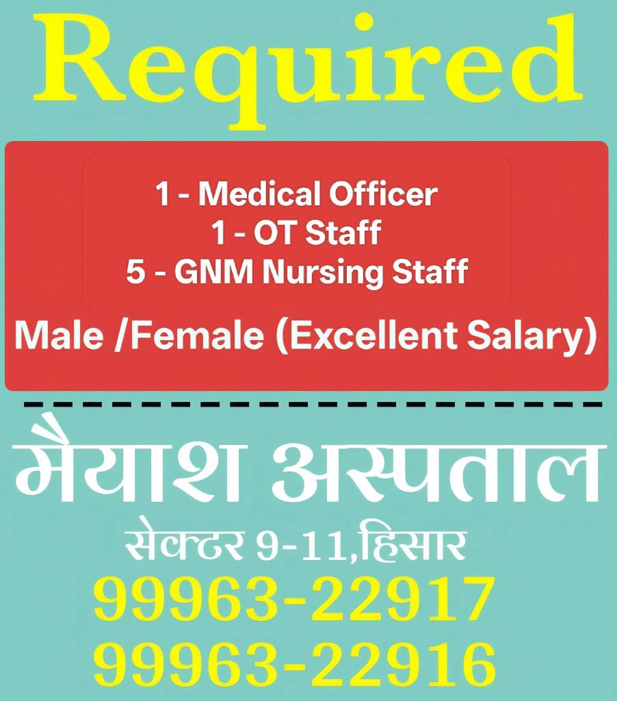 नोट – नीचे कॉलम में देखें > हिसार टाइम्स जॉब्स क्लासिफाइड > आज की बड़ी खबरें फटा फट…