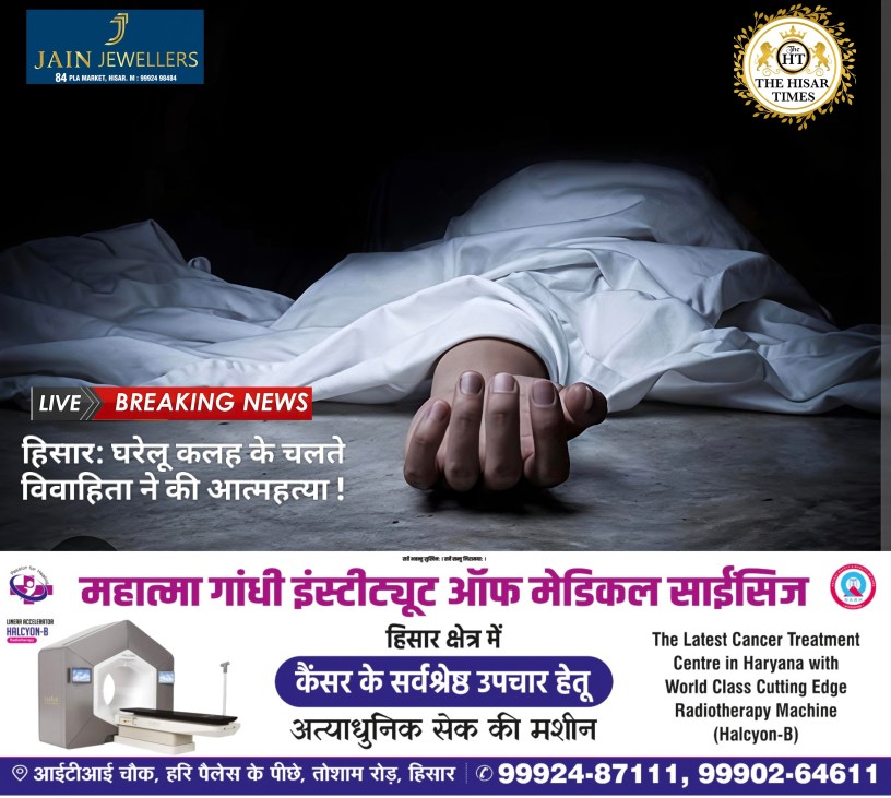 हिसार टाइम्स – हिसार के जेवरा गाँव में एक दुखद घटना घटी, जहाँ पति के साथ चल रही अनबन से परेशान होकर मुस्कान नामक विवाहिता ने सल्फास की गोलियां खा लीं। मुस्कान की शादी साल 2020 में साहिल के साथ हुई थी और उनके दो बच्चे (एक बेटा और एक बेटी) भी हैं। बताया जा रहा है कि पिछले कुछ समय से मानसिक तनाव के कारण उन्होंने यह आत्मघाती कदम उठाया। उन्हें गंभीर हालत में निजी अस्पताल ले जाया गया, जहाँ इलाज के दौरान उनकी मौत हो गई। पुलिस ने शव का पोस्टमार्टम करवाकर परिजनों को सौंप दिया है और इत्तेफाकिया कार्रवाई शुरू कर दी है।