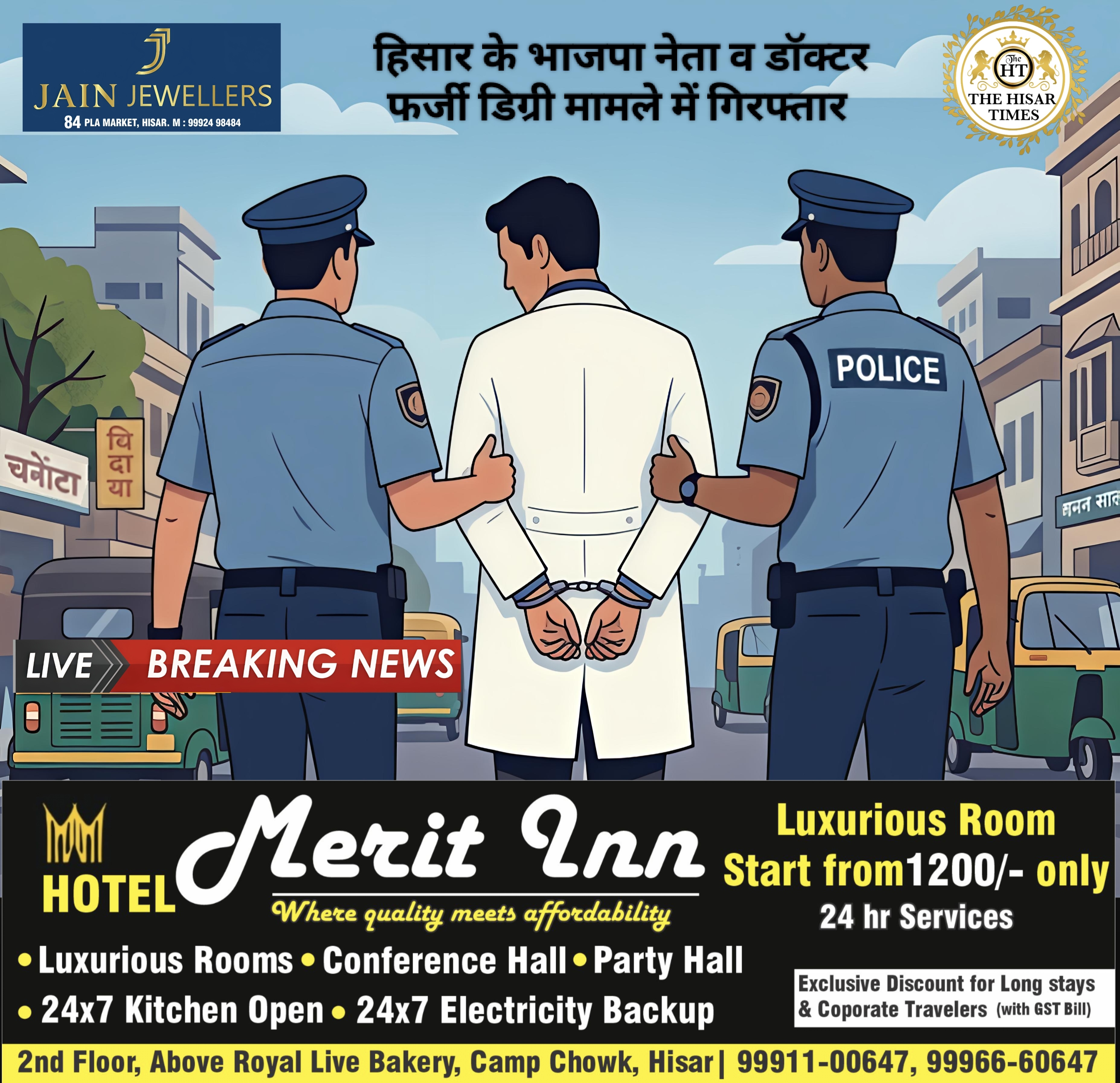 हिसार -भाजपा नेता व डॉक्टर फर्जी डिग्री मामले में गिरफ्तार !