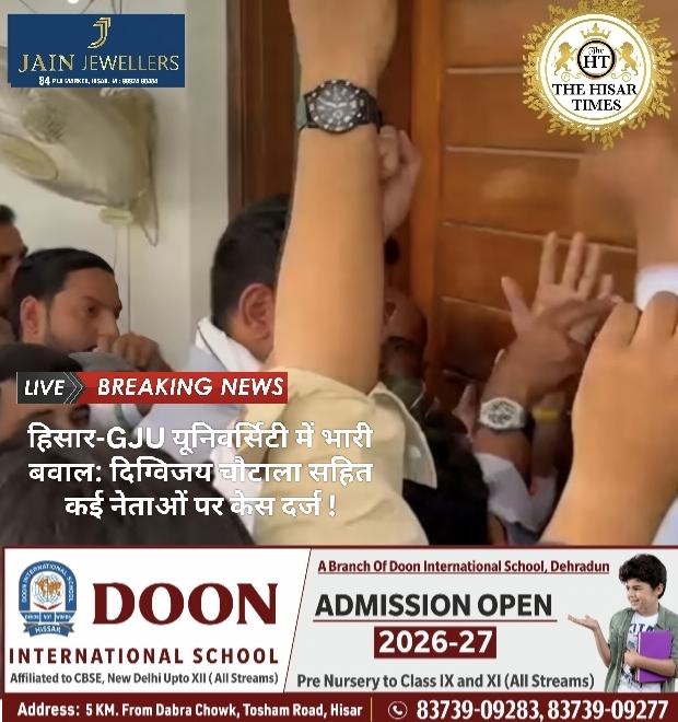 हिसार-GJU यूनिवर्सिटी में भारी बवाल: दिग्विजय चौटाला सहित कई नेताओं पर केस दर्ज !