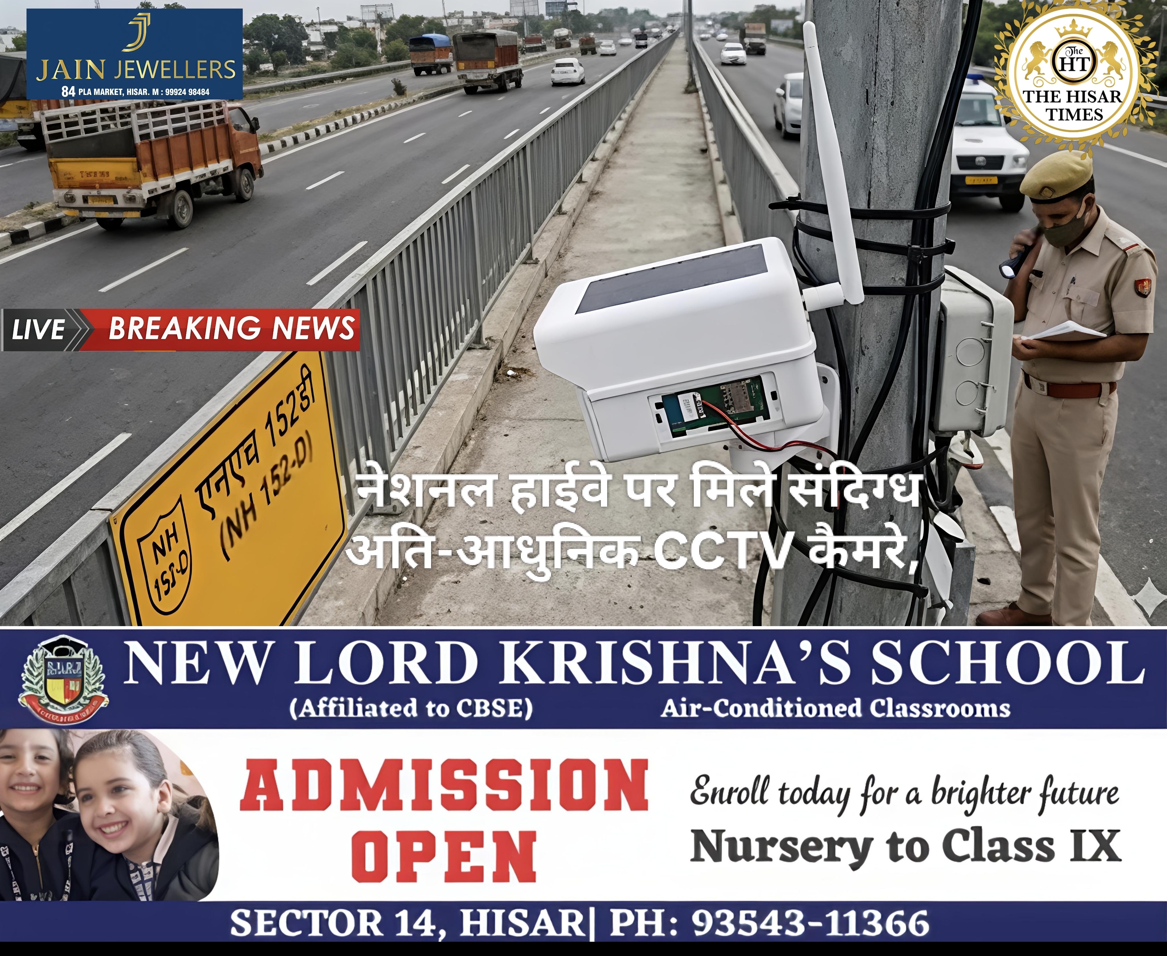 नोट – नीचे कॉलम में देखें > हिसार टाइम्स जॉब्स क्लासिफाइड > आज की बड़ी खबरें फटा फट… For Free Job & News Updates Join Hisar Times News Group https://chat.whatsapp.com/ EHzVoGH50MdINoYniG4crH ➖➖➖➖➖➖➖➖➖➖➖➖➖➖➖➖ ◾ देश की सुरक्षा में सेंध: अम्बाला नेशनल हाईवे पर जासूसी कैमरों का जाल, पंजाब कनेक्शन आया सामने अम्बाला में नेशनल हाईवे-44 और … Continue reading नेशनल हाईवे पर मिले संदिग्ध अति-आधुनिक CCTV कैमरे, क्या पाकिस्तान के धुरंधर भी घूम रहे हैं हिंदुस्तान में ?