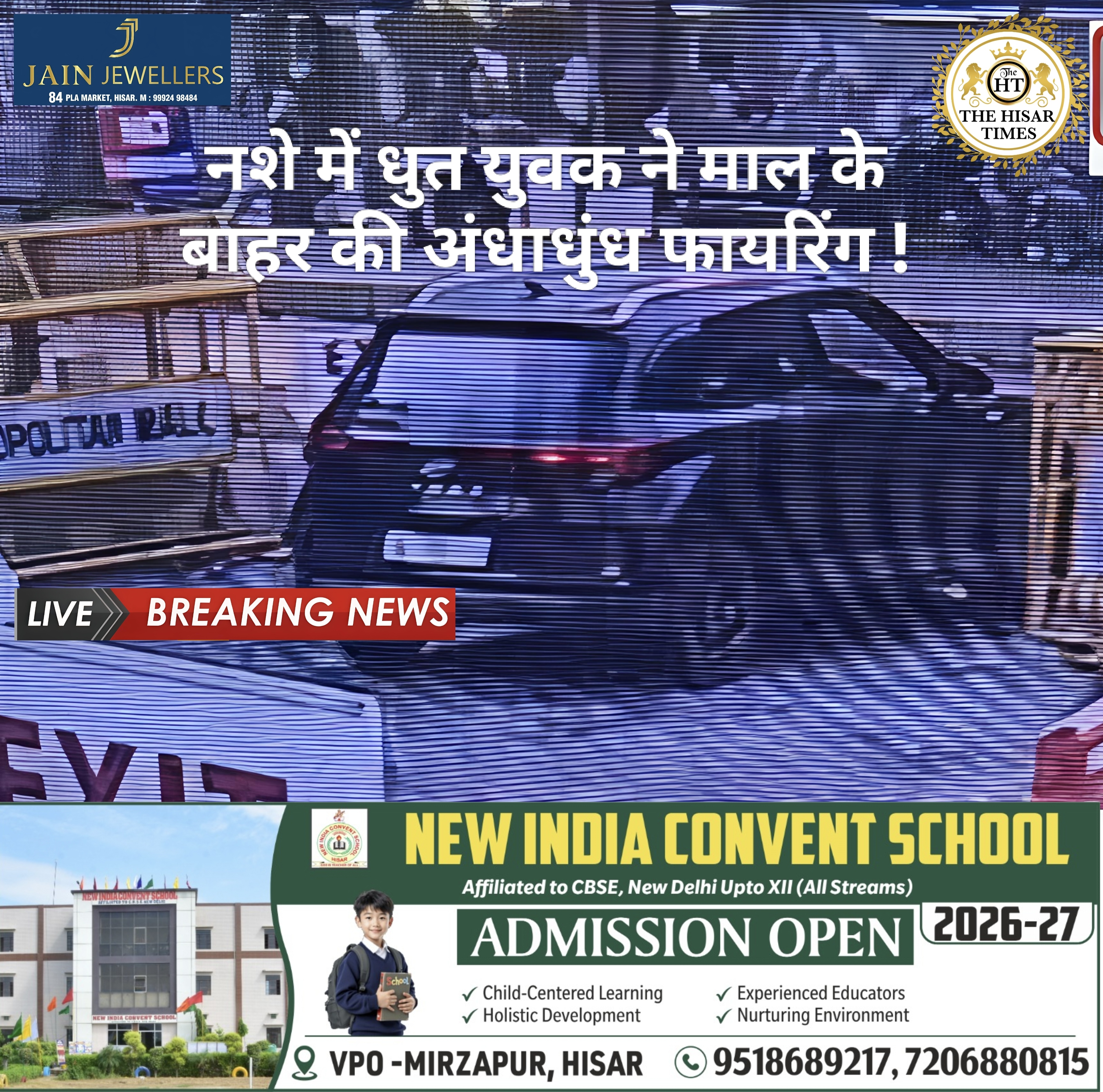 नोट – नीचे कॉलम में देखें > हिसार टाइम्स जॉब्स क्लासिफाइड > आज की बड़ी खबरें फटा फट… For Free Job & News Updates Join Hisar Times News Group https://chat.whatsapp.com/ EHzVoGH50MdINoYniG4crH ➖➖➖➖➖➖➖➖➖➖➖➖➖➖➖➖➖ हिसार टाइम्स – गुरुग्राम की नाइटलाइफ़ और सुरक्षा पर एक बार फिर सवालिया निशान लग गया है। एमजी रोड स्थित एक प्रमुख मॉल … Continue reading नशे में धुत युवक ने माल के बाहर की अंधाधुंध फायरिंग !