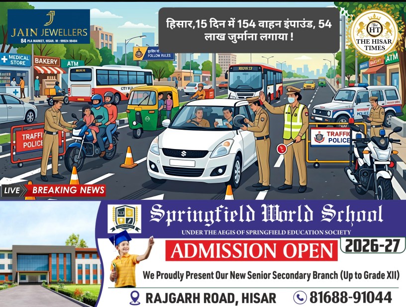 हिसार टाइम्स – हिसार जिले में बिना कागज के दौड़ रहे वाहनों पर आरटीए ने अब सख्ती बढ़ा दी है। जिले के मुख्य मार्गों पर चलाए गए 15 दिन के विशेष अभियान में आरटीए (क्षेत्रीय परिवहन प्राधिकरण) टीम ने 154 वाहनों को पकड़ा और इंपाउंड कर 54 लाख 4 हजार रुपये का जुर्माना लगाया। अभियान मुख्य रूप से हिसार-दिल्ली और हिसार-सिरसा मार्ग पर चलाया गया जहां ट्रक, अवैध बसें और अन्य भारी वाहन नियमों की अनदेखी करते हुए दौड़ रहे थे।