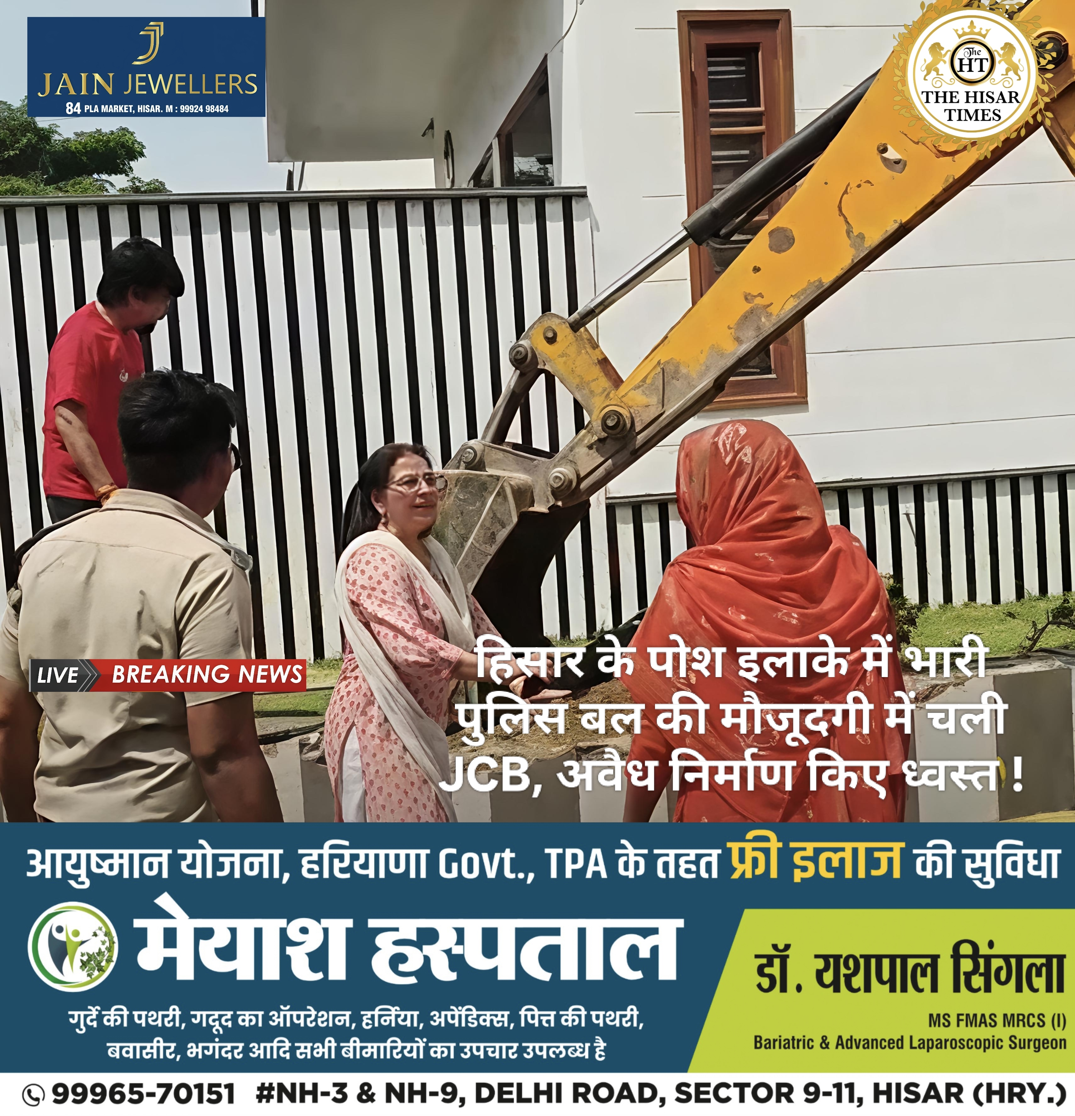 हिसार के पोश इलाके में भारी पुलिस बल की मौजूदगी में चली JCB, अवैध निर्माण किए ध्वस्त !