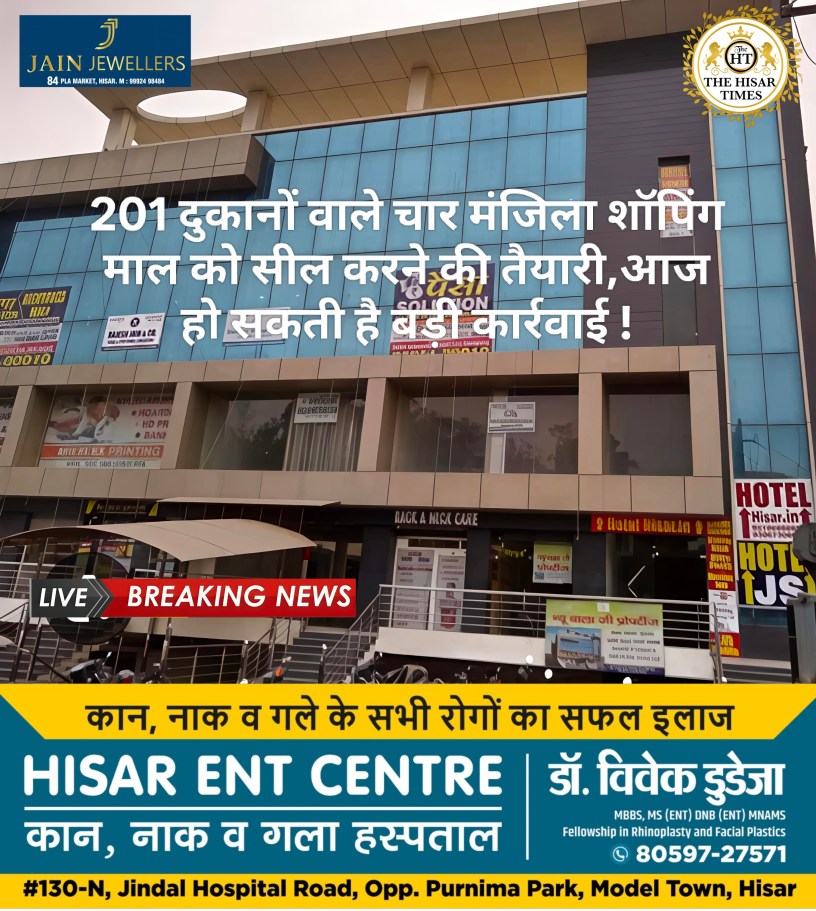 201 दुकानों वाले चार मंजिला आरडी सिटी सेंटर को सील करने की तैयारी | शॉपिंग मॉल में चल रहे प्रतिष्ठानों से करीब 500 परिवारों का रोजगार जुड़ा | निगम ने मॉल पर चस्पा किया नोटिस, आज हो सकती है कार्रवाई