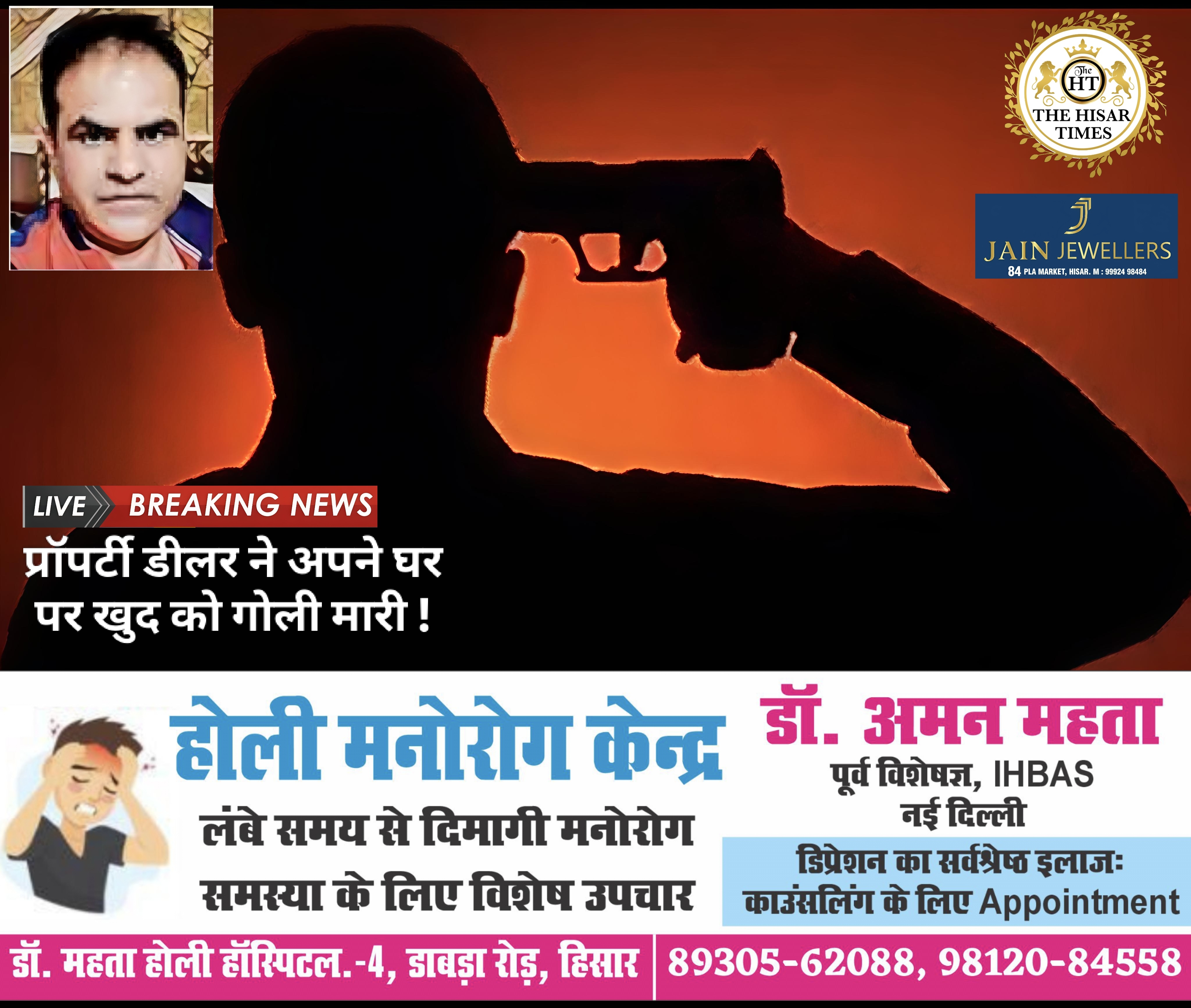 हिसार,प्रॉपर्टी डीलर ने अपने घर पर खुद को गोली मारी !