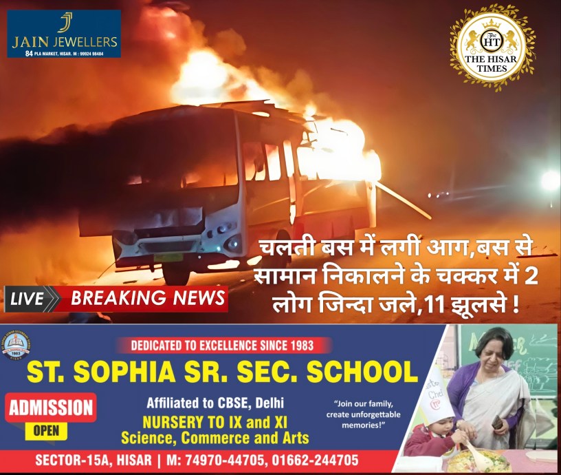 हांसी में चलती बस बनी आग का गोला: 2 यात्री जिंदा जले, 11 गंभीर रूप से झुलसे