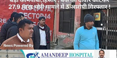 Crime, Health, Lifestyle, Top News बड़ी कामयाबी,हिसार : बैंक की दीवार काटकर 27.9 लाख चोरी मामले में 3 आरोपी गिरफ्तार ! January 21, 2026